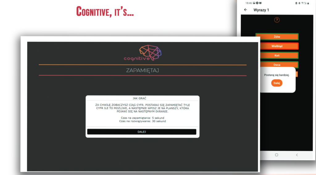 The project aims to create an affordable and easy-to-use tool for the rehabilitation of cognitive functions, such as receiving, storing and processing information. Additionally, it is designed to cover the process at both ends i.e. create a dedicated part for patients and specialists.