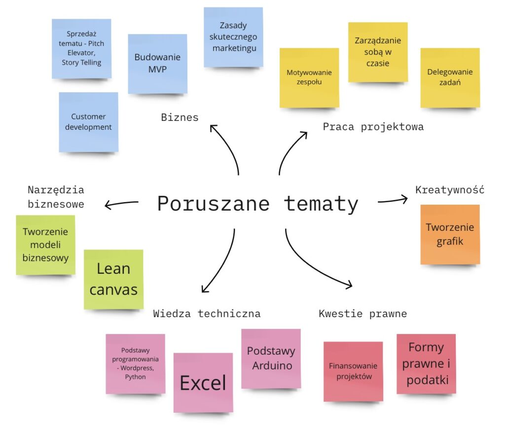Na naszych szkoleniach poruszamy wiele tematów dotyczących biznesu, umiejętności miękkich i nowych technologii. Są idealną okazją do uzupełnienia swojej wiedzy wyniesionej ze studiów oraz rozwoju umiejętności potrzebnych na rynku pracy.